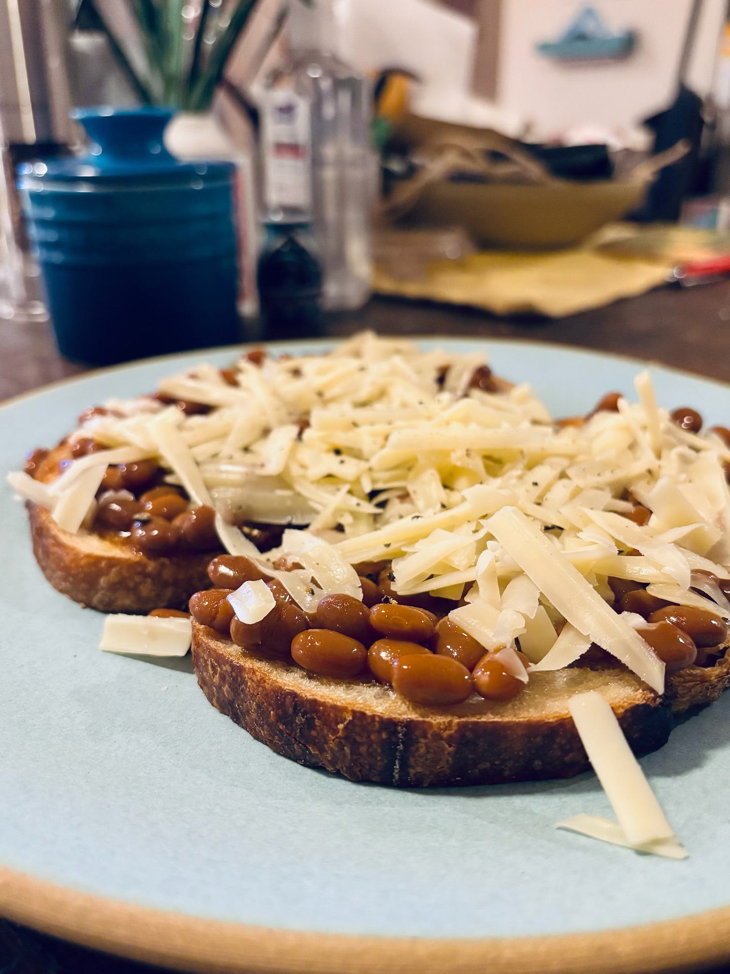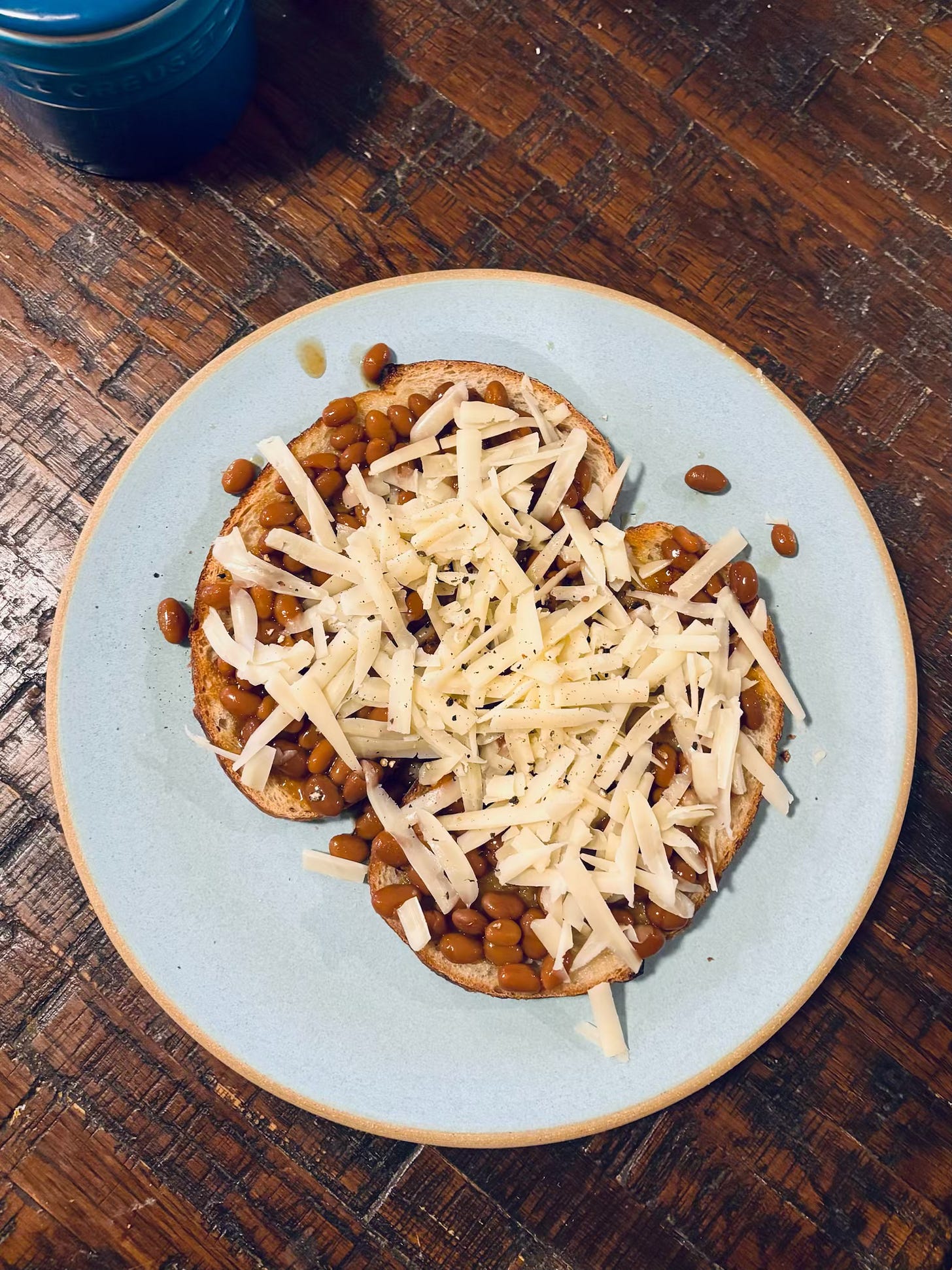 I like my beans on toast at lunchtime, but this is truly a dish that cuts across the divides of mealtime. It’s perfect, protein-packed breakfast fuel ahead of a long run on a chilly day. It’s an easy Girl Dinner when you finish work at 8 p.m. and the stores are closed. I always have a sliced loaf in the freezer and a couple of tins in the cupboard.