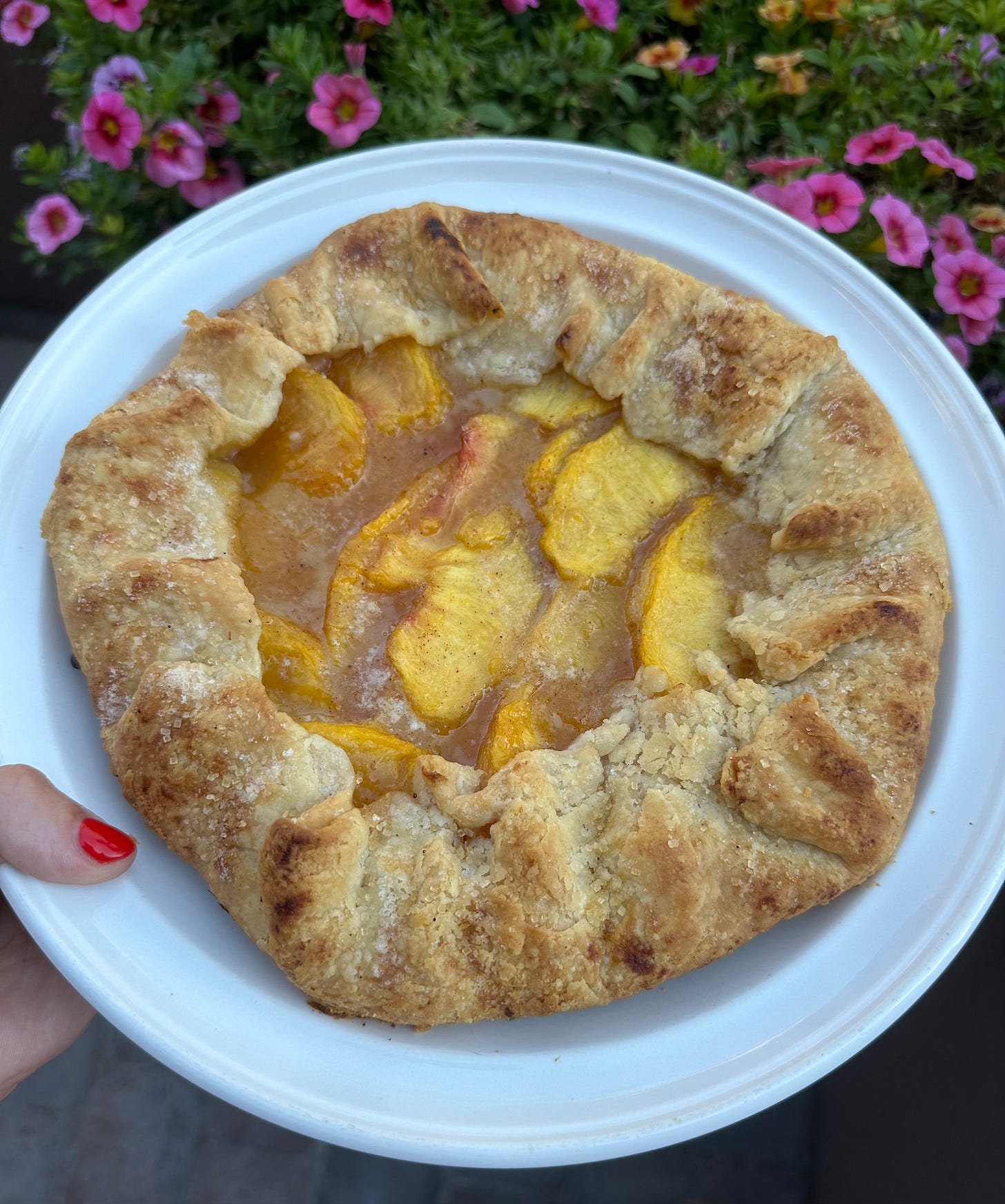 I believe in my bones that a free-form tart—a galette if you will—is the superior peach dessert.
